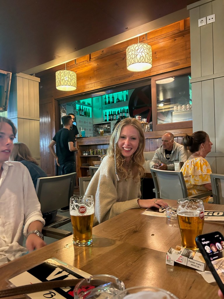 I have a braid! I got drunk, paid €10, chose blue, gold, and pink, sat in a chair for 10 minutes (swaying slightly), got a braid, then went and got two cocktails to celebrate. Perhaps that’s how it should be done aged 20. I have never had a braid before (I wasn’t allowed them – too expensive for something I’d have to have cut out in time for school next week, too appealing as a nesting place for nits etc etc). But now here I am, aged 20 and two months, going on lads trips to Portugal and claiming my own hair style one braid at a time. (I only have one, but I intend to have another next summer if I’m so inclined. I might have grown out of it by then, you never know).