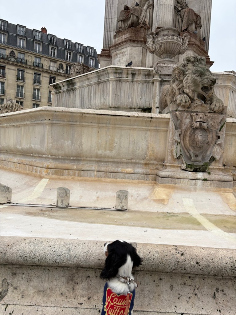 He didn’t. My flat is beautiful, set back in a courtyard along a street of high-end antique shops. My building seems to be owned by a scary propriétrice (FA) with rouge-wash hair and a maroon Mini Cooper from the 60s. There’s a lovely lady with a divine leopard trench coat who keeps chihuahuas on the first floor. I am on the top floor, which is proving an issue. Gabriel refuses to go to the loo at all, except on the Deuxième étage where apparently someone’s unassuming doormat is the next best thing to grass (it’s happened twice, and we’ve been here less than two hours. Why that doormat, I’d like to know. We walk past at least ten others before we reach that one). We were stopped on the street by and man and his son, who had been debating the “race” (FA) of my petit chien. I pleased them both, by saying he was a (perfect, in my opinion) “mélange d’un cocker et un King Charles”. They were both right. Gabriel, freed from his swaddling bands (my enormous puffer coat) which the security men at the Gare du Nord insisted I wrap him in before getting in a taxi, since the taxi-man didn’t want ‘fourrure’ all over his back seat (I’d like to have said I’m sure he’s had much worse, but I was tired and didn’t want to get my French wrong and thereby nullify my snide remarques (FA)), pranced prettily past a bar-full of Influencers, and has since been stopped three times in the space of 24-hours. (Notably, it is often older gentlemen of a certain style (smart jackets, tortoiseshell glasses, polished shoes) who tell me they once owned “un King-Charles” (said very quickly, like it’s one word). I won’t read too much into it).