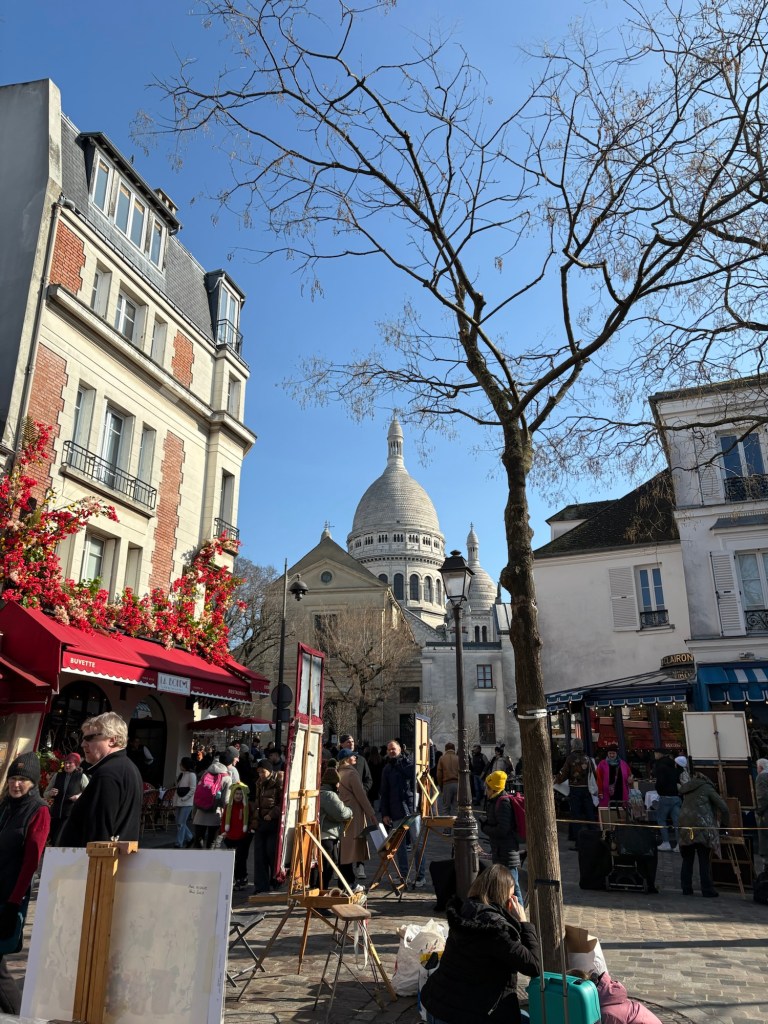 It is only 3 o’clock in the afternoon, and I have had one of the happiest days of my life. Gabriel and I found heaven at the top of the steps of Montmartre. Maybe being that bit closer to God really does help? I have postcards, and photo-booth pictures, and a caricature which over-mphasises my bunny-rabbit teeth. (Perhaps I am being vain; the man said smile, bigger (FA), so I did. I have always been insecure about them, but I suppose the point of a caricature is to over-exaggerate one’s insecurities). The artist was called Bombas, or something which sounded like Thomas (FA) but definitely began with a ‘B’. I have looked it up, and ‘Bombas’ derives from the Latin of ‘bumblebee’, which in a funny way rather suits him. He had at least fifteen charcoal pencils in each of the five pockets of his jacket. Before he did caricatures in the Place du Tertre, he was an engineer. A more practical career, I suggested, and he agreed with a gruff nod of his head. He gave me a Lindt chocolate square, and put Louis Vuitton and a heart on Gabriel’s jumper in the drawing.