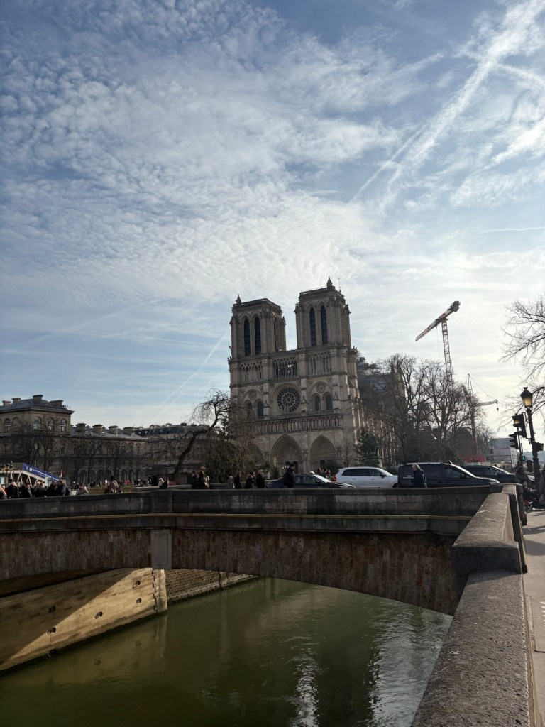 We were stopped by two little old ladies by the Pont Neuf. They asked me in very clear-spoken, high-pitched French (she was wearing pink glasses, and had her bleached hair cropped close to her scalp) where Notre-Dame was. The giggles which rose inside my stomach had to be suppressed. They were French; I was (am) not. They did not assume I was English, nor, I don’t think (after I told them to cross back over the bridge and then turn right — they’d been walking steadfastly in the wrong direction, towards the Eiffel Tower, which, though due North, was not at all where they wanted to go) did they guess it. We spoke perfect clear-cut, high-pitched French, and wished one another a “Bonne journée”. I hope they found Notre-Dame. It is hard to miss.