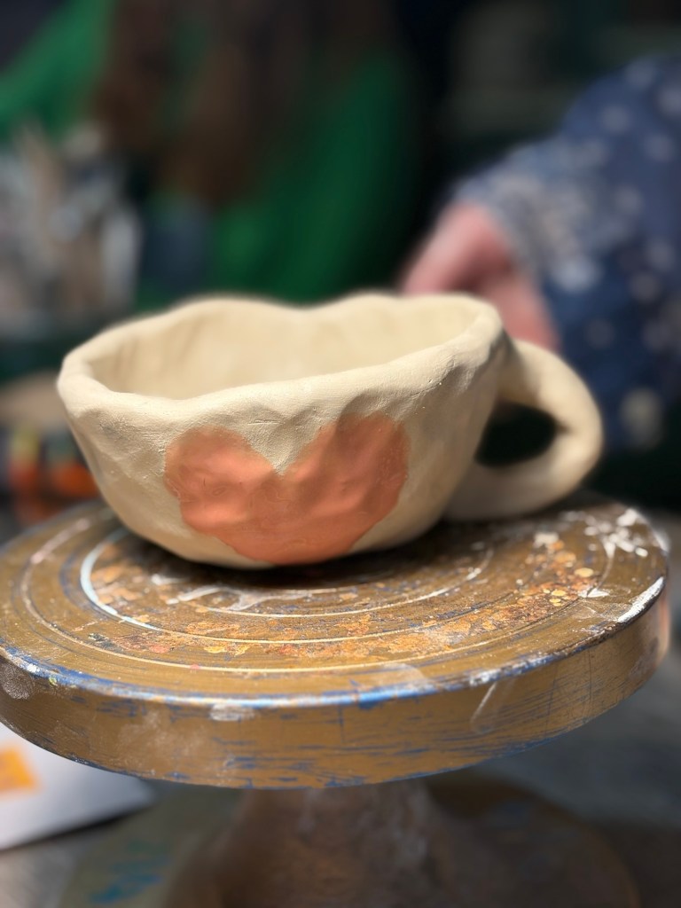 I will pick up my mug, all cooked and drinkable-from, in 10 days. It will remind me forever of Paris. It is simple, utterly imperfect, and will taste always of coffee. I will love it; every morning with breakfast, every evening in front of the TV. There’s always a heart in Paris. Il y a toujours un coeur à Paris (FA).