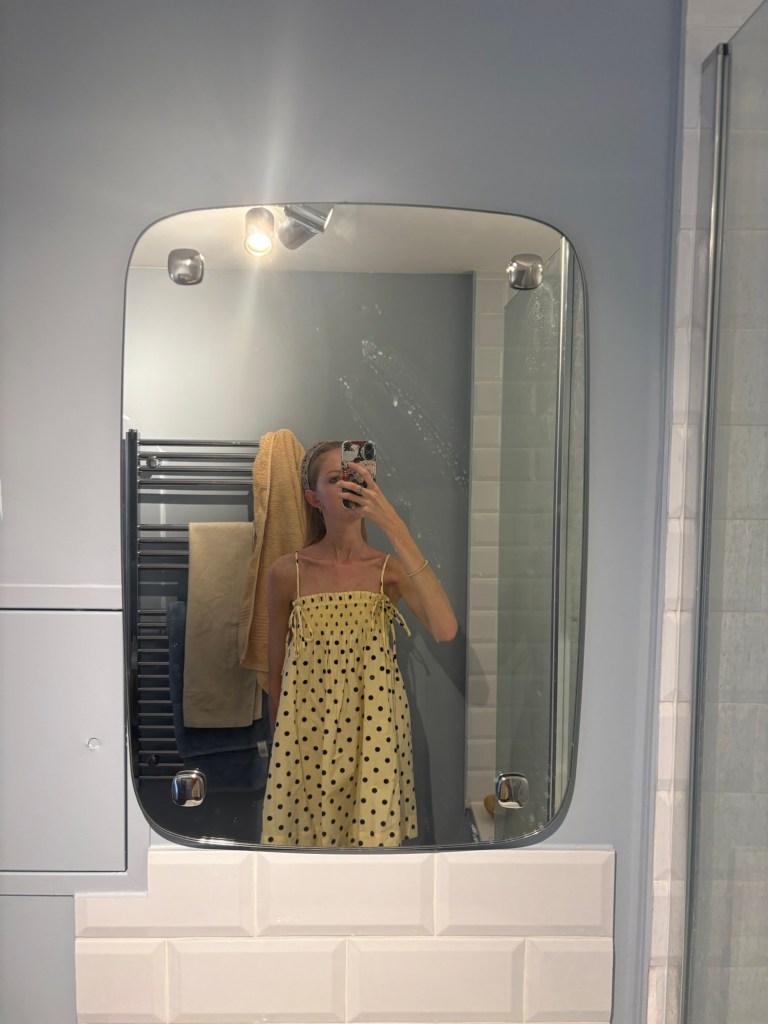 Mum and daughter wear matching t-shirts. Dad wears white linen from his head to his white-trainer encased toes. The woman on the balcony opposite has her dress rolled down over her bottom, her breasts swinging in the morning heat like fat ripe apples in early October. She is unbothered. Naked and Not Afraid. Olive-toned and shriveled like a walnut shell. She takes down the laundry and looks out at the view. Her breasts steady from their lulling swing, and eventually lie still. They slope from her chest in a gentle, aging arch. Her belly swells beneath them. She is beautiful. She is – it suddenly seems to me, in the heat and the traffic and the motorbike roar, from where I sit high on a balcony in Pimlico in a yellow dress which makes me smile and taste bitter coffee on my tongue – extremely beautiful. She is Woman. I feel somehow a part of her, just watching. We are Woman, together.